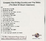 The Greatest Hits of Big Country and The Skids/ The Best of Stuart Adamson Promo, Universal Music TV Doppel- Promo- CD. CD 1: Into the Valley, Masquerade, Working for the Yankee Dollar, Fields of Fire, In a big Country, Chance, Wonderland, East of Eden, Where the Rose is sown, Just a Shadow, Look away, The Seer- featuring: Kate Bush, Alone, King of Emotion, Ships, Fragile Thing- featuring: Eddi Reader. CD 2: Charles, Charade, Circus Games, The Saints are coming, Harvest Home, The Teacher, Broken Heart (Thirteen Valleys), Peace in our Time, Save me, Heart of the World, Republican Party Reptile, Beautiful People, You Dreamer, Perfect World, See You, Somebody Else, Simple Man, Learning to row, Too many Ghosts.