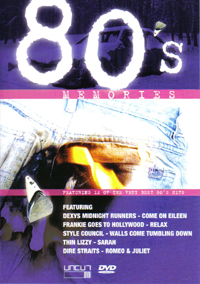 DVD 80’s Memories PAL Colour, Region 0, DOLBY Digital. Dexys Midnight Runners (Come on Eileen), Steve Winwood (Valerie), ABC (When Smokey sings), Dire Straits (Romeo & Juliet), Kool & the Gang (Get down on it), Womack & Womack (Teardrops), Frankie goes to Hollywood (Relax), Big Country (In a big Country), Robert Palmer (Johnny and Mary), Commodores (Nightshift), Thin Lizzy (Sarah), Style Council (Walls comer tumbling down).