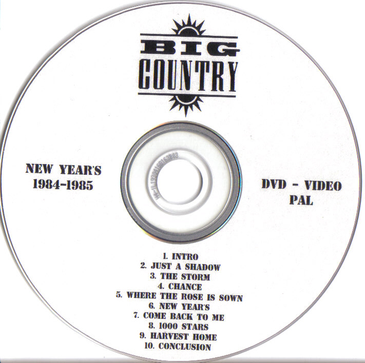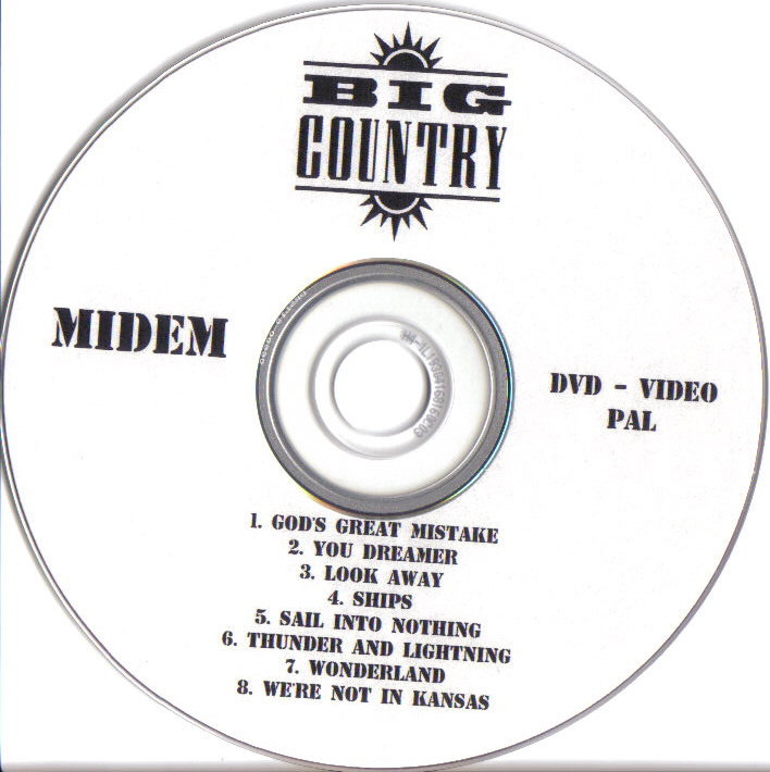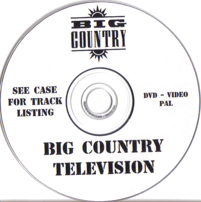 Big Country on TV- Pop Carnival Homemade DVD in PAL Colour, neutral white cover, handwritten, released in 2004. Contains a lot of clips from various TV appearences/ shows from the early to the mid 80s: Sefton Park, Liverpool, 2.07.1984: Porrohman, The Storm, In a big Country, Chance, Angle Park, Fields of Fire. TV- Clip "Chance". Whistle Test Hexagon/ Reading 1986: Remembrance Day, The Teacher. TV- Appearance on "The Tube": Porrohman, Wonderland, Harvest Home. TV- Clip "Where the Rose is sown". Whistle Test (not 1986!): Look away, Interview, The Teacher. TV- Clip "In a big Country". Videoclip "The Teacher" (Whistle Test Video Vote Winner). TV- Appearance at Whistle Test Hexagon/ Reading 1986: The Teacher, In a big Country, Inwards, Harvest Home, Fields of Fire (Scratch Version). Videoclip "Wonderland". TV- Clip "In a big Country" on "The Tube". Live Appearance "See you" (in a US car- showroom) on BBC Watchdog 1999. The picture- quality is just unbelievable and pretty amazing according to the age of the original recordings!