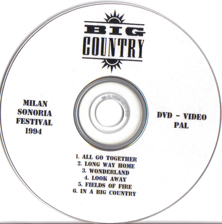 Milan Sonoria Festival DVD PAL Colour. All go together, Long Way home, Wonderland, Look away, Fields of Fire, In a big Country.