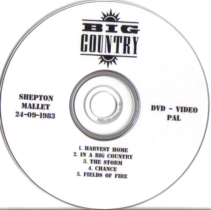 Shepton Mallet DVD PAL Colour. Recorded 24.09.1983: Harvest Home, In a big Country, The Storm, Chance, Fields of Fire.