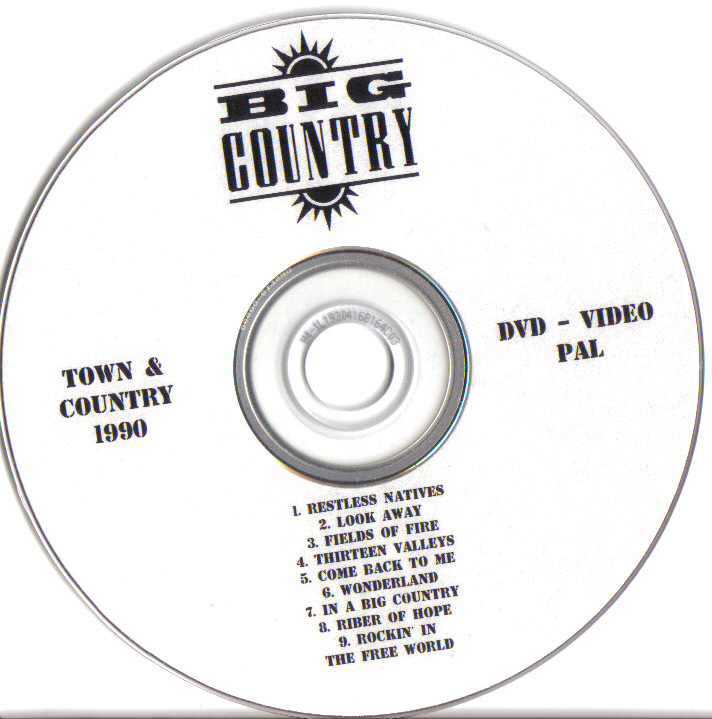 Town & Country 1990 DVD PAL Colour. Restless Natives, Look away, Fields of Fire, Broken Heart (13 Valleys), Come back to me, Wonderland, In a big Country, River of Hope, Rockin' in the free World.