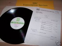 BBC Transcription Disc, BBC Library 1983, Programme Number 314, CN 4258/S. Broadcasted on 11/12/1983. Harvest Home, Close Action, Balcony, Lost Patrol, Porrohman, The Storm, In a big Country, Chance, Angle Park, Fields of Fire.