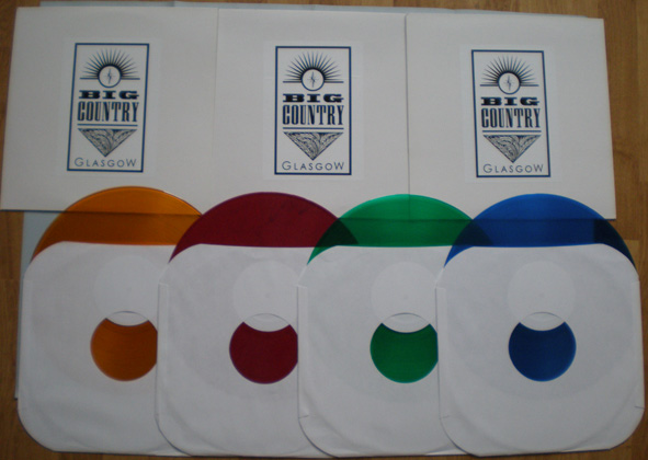 Apollo Glasgow 1984 Promo Live-LP, The Source Germany, limited Edition, on blue, red, green and yellow Vinyl. Recorded live at the Apollo Theatre in Glasgow on 21/12/1984. Raindance, Wonderland, Lost Patrol, Steeltown, In a big Country, Chance, Where the Rose is sown, Come back to me, East of Eden, Fields of Fire.
