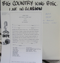 The King Bisquit's Music Show, recorded live at the Hammersmith Odeon, London, on September 18th, 1984. Harvest Home, Close Action, Balcony, Lost Patrol, Porrohman, The Storm, In a big Country, Chance, Angle Park, Fields of Fire. Made in the USA for Radio DJ promotion!