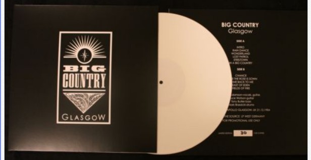 Homeland (White Cover/ Black Vinyl), WIND RECORDS- SHEFFIELD, MB 5331. Limited Edition 400 Copies. Big Country live in Glasgow 31/12/1983: 1000 Stars, Angle Park, Close Action, Lost Patrol, The Storm, Wonderland, In a big Country, Chance, Inwards, Fields of Fire. Titles written onto the record labels on both sides by hand!